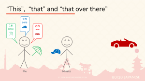 - How to Say “This” and “That” in JapaneseIn English, when we want to refer to something without saying exactly what it is, we have two simple words: Japanese, on the other hand, has six words to cover the same ground. That might sound intimidating at first, but the system behind these words is simple and logical. In this article, we’re going to… Read more: How to Say “This” and “That” in Japanese